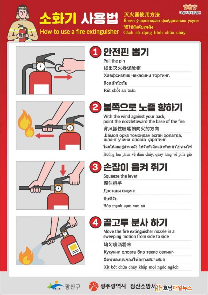 ±¤»ê±¸ °ü³» »ê¾÷´ÜÁö Ư¼º»ó ÀÌÁֳ뵿ÀÚ°¡ ¸¹´Ù´Â Á¡À» °í·ÁÇØ ÈÀç ¹ß»ý ½Ã Ãʱ⠴ëó´É·ÂÀ» Çâ»óÇϱâ À§ÇÔÀÌ´Ù. ±¤»ê±¸´Â ¿µ¾î, Áß±¹¾î, ¿ìÁŰ½ºÅº, º£Æ®³², ű¹ µî 5°³ ¾ð¾î·Î Á¦ÀÛÇÑ ¼Òȱâ»ç¿ë¹ý ½ºÆ¼Ä¿ 1¸¸ ¸Å¸¦ Çϳ²‧Æòµ¿‧¼ÒÃÌ µî »ê´Ü ÇùÀÇȸ¸¦ ÅëÇØ »ç¾÷Àå¿¡ ¹èÆ÷Çϰí ÀÖ´Ù.