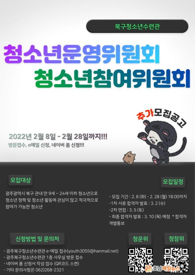¸ðÁýÀº ¿À´Â 2¿ù 28ÀÏ(¿ù)±îÁö û¼Ò³â¿î¿µÀ§¿øÈ¸´Â 15¸í ³»¿Ü, û¼Ò³âÂü¿©À§¿øÈ¸´Â 20¸í ³»¿Ü·Î ±¤Áֺϱ¸ °ÅÁÖÀÚ ¶Ç´Â ±¤Áֺϱ¸ ¼ÒÀç Çб³ ÀçÇÐÁßÀÎ ¸¸ 9¼¼~24¼¼ÀÌÇÏ Ã»¼Ò³âÀ̶ó¸é ´©±¸³ª ½ÅûÇÒ ¼ö ÀÖ´Ù.