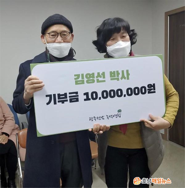 ÇÑÆí, ±¤ÁÖÀü³²³ì»ö¿¬ÇÕ ½ÅÀϼ· »óÀÓ´ëÇ¥´Â ±è¿µ¼± ¹Ú»ç¿¡°Ô °¨»çÀÇ ¸¶À½(°¨»çÆÐ)¸¦ Àü´ÞÇϸç, 10³â°£ ¹«µî»ê ¹× Àå·Ï±¹°¡½ÀÁö µî ȯ°æ º¸Àü ¿îµ¿¿¡ ¾ÕÀå¼ Áà °¨»çÇÏ´Ù¸é¼, ±¤ÁÖ ¹°Áٱ⠻ý¹° ´Ù¾ç¼º ȸº¹À» À§ÇØ Èû¾²°Ú´Ù"°í È´äÇß´Ù.