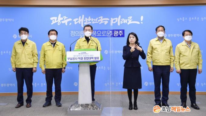 À̿뼷 ±¤ÁÖ½ÃÀåÀº 24ÀÏ ½Ã ºê¸®Çη뿡¼ À̰°Àº ³»¿ëÀ» °ñÀÚ·Î ÇÏ´Â ¡®±¤ÁÖ±¤¿ª½Ã ºÎ½Ç°ø»ç ô°á Á¾ÇÕ´ëÃ¥¡¯À» ¹ßÇ¥Çß´Ù. ÀÌ ½ÃÀåÀº ¡°Áö³ 1¿ù ÈÁ¤µ¿ Çö´ë¾ÆÀÌÆÄÅ© ½ÅÃà¾ÆÆÄÆ® ºØ±«»ç°í¸¦ »À¾ÆÇ ±³ÈÆÀ¸·Î »ï¾Æ ºÎ½Ç°ø»ç¸¦ ô°áÇÔÀ¸·Î½á ¿ÃÇØ¸¦ ¡®±¤ÁÖ °Ç¼³ÀÇ ¾ÈÀü ¿ø³â¡¯ÀÌ µÇµµ·Ï Çϰڴ١±°í ¹àÇû´Ù.