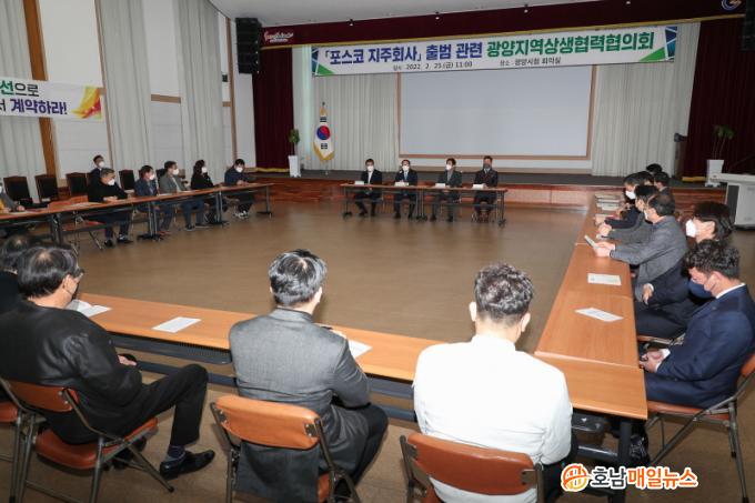 ÇùÀÇȸ´Â ¡°Æ÷½ºÄÚ°¡ Àü ¼¼°è¿¡ ´õºÒ¾î ¹ßÀüÇÏ´Â ±â¾÷½Ã¹ÎÀÇ ÁøÁ¤ÇÑ ¸ð¹ü»ç·Ê°¡ µÇ±â¸¦ ¹Ù¶õ´Ù¡±¸ç, ¡â±¤¾çÁö¿ª¿¡ ½Å»ç¾÷ ÅõÀÚ È®´ë ¹× ±âÁ¸ ÅõÀÚ°èȹ Â÷Áú ¾øÀÌ ÃßÁø, ¡âÁö¿ªÀÎÀçÀÇ Á÷¾÷±³À°À» Áö¿ø°ú ¿ì¼± ä¿ë º¸Àå, ¡âºÒÇÕ¸®ÇÑ ±¸¸ÅÁ¦µµ °³¼±°ú Áö¿ª¾÷ü ÀÔÂûÀ» È®´ëÇÏ´Â Áö¿ª°æÁ¦ Ȱ¼ºÈ ¹æ¾È ¸¶·Ã, ¡â±¤¾çÁö¿ª»ó»ýÇù·ÂÇùÀÇȸ¿¡ µ¿ÂüÇÏ¿© ÇùÀÇȸ°¡ ¿ä±¸ÇÑ »çÇ×À» Àû±Ø ÀÌÇàÇÒ °Í µî ³× °¡Áö »çÇ×À» ÁÖ¹®Çß´Ù.