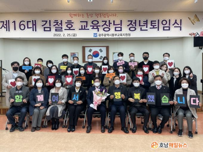 28ÀÏ µ¿ºÎÁö¿øÃ»¿¡ µû¸£¸é À̹ø ÅðÀÓ½ÄÀº ±èöȣ ±³À°ÀåÀÇ Áö³ 42³â µ¿¾È ±¤ÁÖ±³À° ¹ßÀü¿¡ Å©°Ô À̹ÙÁöÇÑ °ø·Î¸¦ ±â¸®±â À§ÇÔÀÌ´Ù. Äڷγª19 °ü·Ã ¹æ¿ª¼öÄ¢À» ÁؼöÇϸç ÀϺΠÁ÷¿ø°ú °¡Á·µé¸¸ Çà»ç¿¡ Âü¼®Çß´Ù.