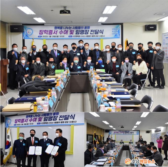 À̳¯ °æ±âµµ È£³²Çâ¿ìȸ ÃÑ¿¬ÇÕȸ(ÃÑȸÀå ±èÆ÷Áß)¿Í (»ç)ÇູÀ» ³ª´©´Â »ç¶÷µéÀÇ µ¿Çà(ÀÌ»çÀå À±ºÀ³²)ÀÌ ÀåÇÐÁõ¼¿Í ÀåÇбÝÀ» °æ±âµµ 31°³ ½Ã.±º¿¡ Àü´ÞÇÏ¿´´Ù.