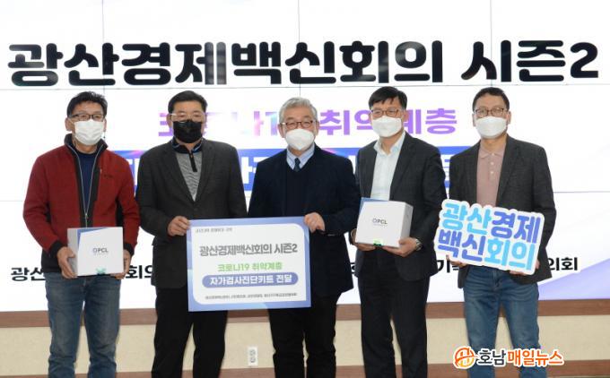 ±¤»ê°æÁ¦¹é½ÅȸÀÇ´Â 2ÀÏ¿¡¼ ±¸Ã» 2Ãþ »óȲ½Ç¿¡¼ Àü´Þ½ÄÀ» °®°í, ±¤»ê±¸ »ê´ÜÇùÀÇȸ, °ñ¸ñ»ó±Ç »óÀο¬ÇÕȸ µî¿¡ ÀÚ°¡°Ë»ç Áø´ÜŰƮ 1¸¸ °³¸¦ Àü´ÞÇß´Ù. 16¹øÂ° ±¤»ê°æÁ¦¹é½ÅÀÌ´Ù.