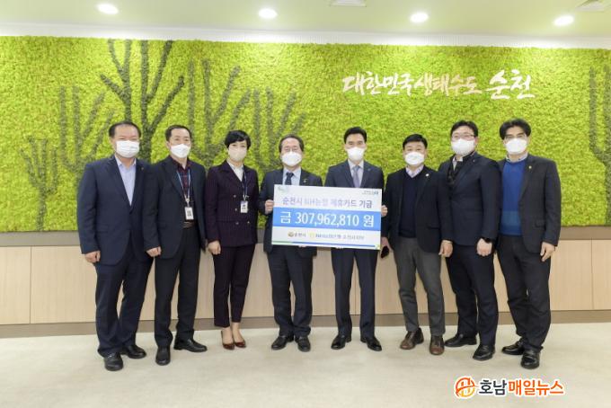 ¼øÃµ½Ã´Â 4ÀÏ NH³óÇùÀºÇà ¼øÃµ½ÃÁöºÎ·ÎºÎÅÍ ¼øÃµ½Ã°¡ ÀÛ³â ÇÑ ÇØ »ç¿ëÇÑ ¹ýÀÎÄ«µå ¹× º¸Á¶±Ý Ä«µå, °ø¹«¿ø º¹ÁöÄ«µå °áÁ¦±Ý¾×¿¡ ´ëÇØ 0.3~1%¾¿ Æ÷ÀÎÆ®¸¦ Àû¸³ÇØ ¸¶·ÃµÈ ±â±ÝÀ» Àü´Þ¹Þ¾Ò´Ù.