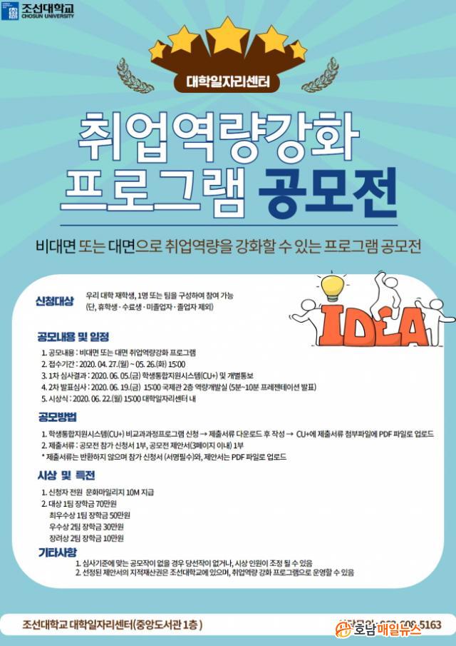 À̹ø °ø¸ðÀüÀº Á¶¼±´ëÇб³ ÀçÇлýÀ» ´ë»óÀ¸·Î ÇлýµéÀÇ ¿ä±¸¿¡ ¸Â´Â ÇÁ·Î±×·¥À» ¿î¿µÇÏ¿© Âü¿© µ¿±â¸¦ ºÎ¿©Çϰí, ¿ì¼ö ÇÁ·Î±×·¥À» ¹ß±¼Çϱâ À§ÇØ ¸¶·ÃµÆ´Ù.