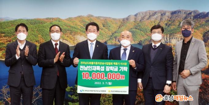Àü³²µµ °ü°èÀÚ´Â ¡°Äڷγª19·Î Èûµç ½Ã±â¿¡µµ ºÒ±¸Çϰí ÀåÇбÝÀ» ¸Ã±ä Àü³²µµÈ¹°ÀÚµ¿Â÷¿î¼Û»ç¾÷Çùȸ ȸ¿øµé²² °¨»çµå¸°´Ù¡±¸ç ¡°±âŹÇÑ ÀåÇбÝÀº Áö¿ª ÀÎÀç°¡ ²ÞÀ» ÆîÄ¡°í ¼ºÀåÇϵµ·Ï ¼ÒÁßÈ÷ ¾²°Ú´Ù¡±°í ¸»Çß´Ù.