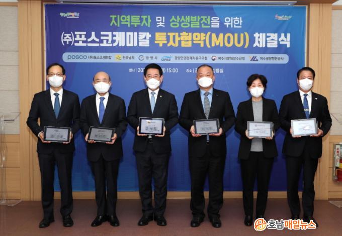 ±¤¾ç½Ã´Â 7ÀÏ ½Ãû »óȲ½Ç¿¡¼ ¹Î°æÁØ ¢ßÆ÷½ºÄÚÄɹÌÄ® ´ëÇ¥, ±è¿µ·Ï Àü¶ó³²µµÁö»ç, Á¤Çöº¹ ±¤¾ç½ÃÀå, ¼Û»ó¶ô ±¤¾ç¸¸±Ç°æÁ¦ÀÚÀ¯±¸¿ªÃ»Àå, Á¶½ÅÈñ ¿©¼öÁö¹æÇؾç¼ö»êûÀå, ¹Ú¼ºÇö ¿©¼ö±¤¾çÇ׸¸°ø»ç»çÀåÀÌ Âü¼®ÇÑ °¡¿îµ¥ ¢ßÆ÷½ºÄÚÄɹÌÄ®°ú Àü±¸Ã¼ »ý»ê°øÀå ¼³¸³À» À§ÇÑ 6,000¾ï ¿ø ±Ô¸ðÀÇ ÅõÀÚÇù¾à(MOU)À» ü°áÇß´Ù.