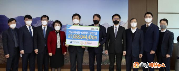 À̳¯ Àü´ÞÇÑ ±â±ÝÀ» Æ÷ÇÔÇØ ³óÇùÀºÇà Àü³²¿µ¾÷º»ºÎ°¡ 17³â µ¿¾È Á¶¼ºÇÑ Àü³²±³À°»ç¶ûÄ«µå ÀåÇбâ±ÝÀº ÃÑ 112¾ï 2,000¸¸¿© ¿ø¿¡ À̸¥´Ù.
