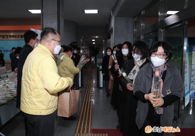 ÀåÈÖ±¹ ±³À°°¨°ú ±èȯ½Ä ºÎ±³À°°¨, ¿À°æ¹Ì ±³À°±¹Àå µîÀº À̳¯ ¿ÀÀü Ãâ±Ù±æ Á÷¿øµéÀ» °Ý·ÁÇÏ¸ç ¹Ì¸® ÁغñÇÑ »§°ú Àå¹Ì²ÉÀ» Àü´ÞÇß´Ù.