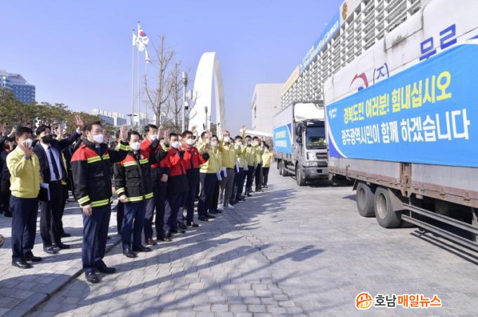 À̿뼷 ½ÃÀåÀº ¡°°©ÀÛ½º·± »êºÒ·Î ÇÇÇØ¸¦ ÀÔÀº Áֹε鿡°Ô Á¶±ÝÀÌ¶óµµ µµ¿òÀÌ µÉ ¼ö ÀÖµµ·Ï ±¤ÁÖÀÇ ¿ÂÁ¤À» ´ãÀº ±¸È£¹°Ç°À» ¸¶·ÃÇß´Ù¡±¸ç ¡±¿ì¸® ±¤Áֽô ¾ÕÀ¸·Îµµ Áö¼ÓÀûÀ¸·Î ³ª´®°ú ¿¬´ëÀÇ ±¤ÁÖÁ¤½ÅÀ» ½ÇõÇϰڴ١±°í ¸»Çß´Ù.