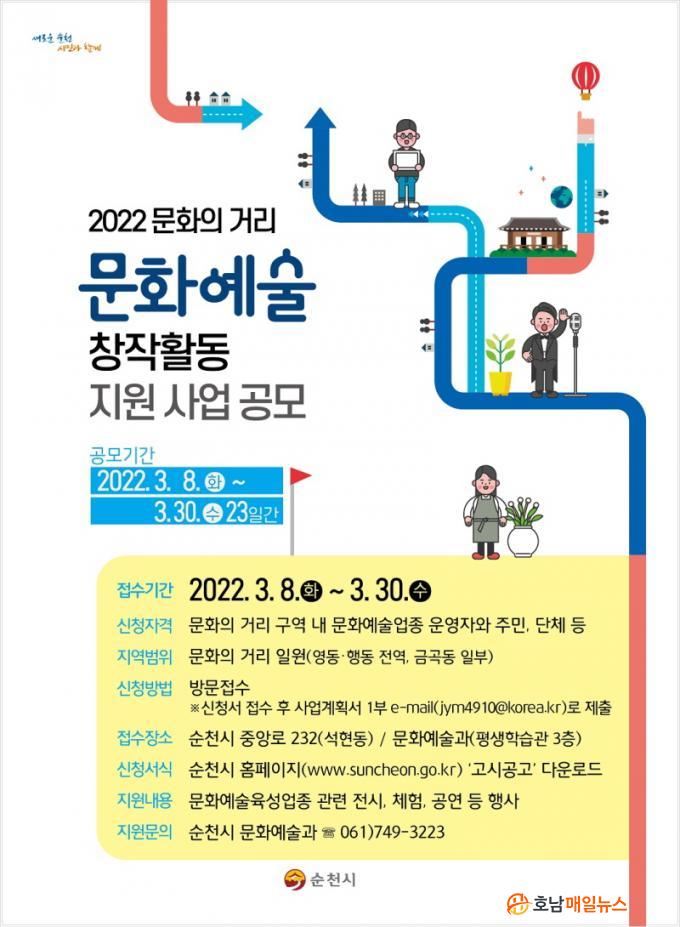 ÀÀ¸ðÈñ¸ÁÀÚ´Â ¼¼ºÎ Çà»ç°èȹ¼ µî ±¸ºñ¼·ù¸¦ °®Ãç ¿À´Â 30ÀϱîÁö ¼øÃµ½Ã ¹®È¿¹¼ú°ú(¹®È°Ç°¼¾ÅÍ Æò»ýÇнÀ°ü 3Ãþ)¿¡ ¹æ¹®½ÅûÇÒ ¼ö ÀÖÀ¸¸ç, ±âŸ ÀÚ¼¼ÇÑ »çÇ×Àº ¼øÃµ½Ã ȨÆäÀÌÁö °ø°í¹®À» È®ÀÎÇϰųª ¼øÃµ½Ã ¹®È¿¹¼ú°ú(061-749-3223)·Î ¹®ÀÇÇÏ¸é ¾È³»¹ÞÀ» ¼ö ÀÖ´Ù.