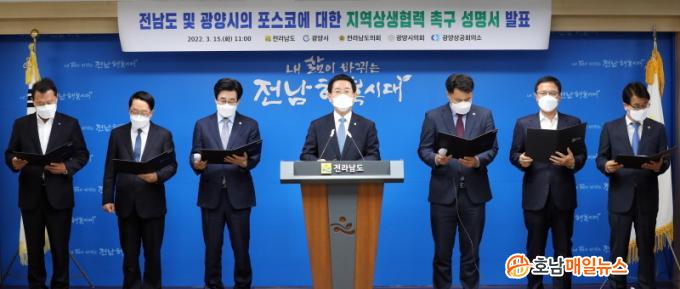 À̳¯ Àü³²µµ¿Í ±¤¾ç½Ã¸¦ ºñ·ÔÇÑ Áö¿ª»çȸ´Üü°¡ Æ÷½ºÄÚ¿¡ Ã˱¸ÇÑ ³»¿ëÀº ¡ã(ÁÖ)Æ÷½ºÄÚ¿Í ¢ßÆ÷½ºÄÚÄɹÌÄ® º»»ç¸¦ ±¤¾çÀ¸·Î ÀÌÀüÇϰí Â÷ÈÄ ½Å±Ô¹ýÀÎ ¼³¸³ ½Ã º»»ç ±¤¾ç ¼³Ä¡ ¡ãÆ÷½ºÄÚ ¹Ì·¡±â¼ú¿¬±¸¿ø ³» ¡®¼ö¼Ò‧Àúź¼Ò¿¡³ÊÁö ¿¬±¸¼Ò¡¯¿Í ¡®ÀÌÂ÷ÀüÁö ¼ÒÀç ¿¬±¸¼Ò¡¯ ±¤¾ç ÀÌÀü ¡ã±âÁ¸ Àü³²Áö¿ª¿¡ ´ëÇÑ 5Á¶ ¿ø ±Ô¸ð ÅõÀÚ°èȹÀÇ Â÷Áú¾ø´Â ÀÌÇà°ú ÀÌÂ÷ÀüÁö µî ½Å»ç¾÷ ºÐ¾ß ÅõÀÚ È®´ë ¡ã±¤¾çÁ¦Ã¶¼Ò ³» ¡®±¸¸ÅÆÀ¡¯ ½Å¼³°ú ¡®Áö¿ª¾÷ü ±¸¸Å¹°·® ¸ñÇ¥Á¦¡¯ ½Ç½Ã ¡ã¡®±¤¾çÁö¿ª»ó»ýÇù·Â ÇùÀÇȸ¡¯¿¡ ¢ßÆ÷½ºÄÚȦµù½º¿Í ¢ßÆ÷½ºÄÚÀÇ Àǹ« Âü¿© ¹× Áö¿ªÇù·Â»ç¾÷ Àû±Ø ÃßÁø, 5°³ »çÇ×ÀÌ´Ù.