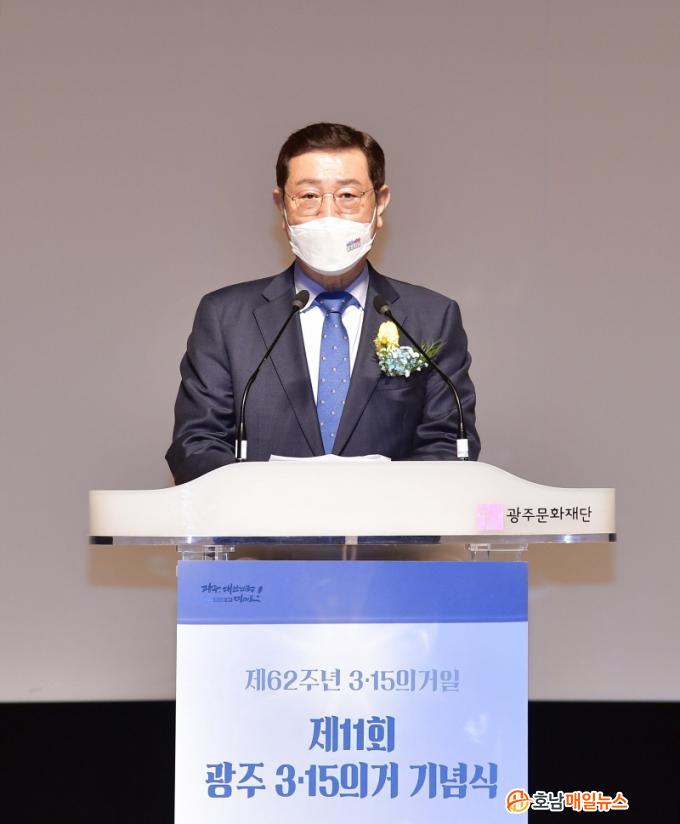À̿뼷 ±¤ÁÖ±¤¿ª½ÃÀåÀº ±â³ä»ç¿¡¼ ¡°1960³â À̽¸¸ µ¶ÀçÁ¤±Ç¿¡ ¸Â¼ 4¡¤19Çõ¸íÀÇ ±âÆøÁ¦°¡ µÆ´ø ±¤ÁÖ 3¡¤15ÀǰÅÀÇ ¿ª»ç°¡ ¿Ã¹Ù¸£°Ô Æò°¡µÇ°í ±â¾ïµÉ ¼ö ÀÖÀ» ¶§ °ÇÑ ÈûÀ» °®´Â´Ù¡±¸ç ¡°¾ÕÀ¸·Î ¹ÎÁÖ¡¤Àαǡ¤ÆòÈ µµ½Ã¿¡ °É¸Â°Ô ÀÚÀ¯ ¹ÎÁÖÁÖÀÇ Á¤½ÅÀ» ´õ¿í °è½Â ¹ßÀü½ÃÄÑ ¡®´õ Å©°í ´õ °ÇÑ ±¤Áֽô롯¸¦ ¿°Ú´Ù¡±°í ¸»Çß´Ù.