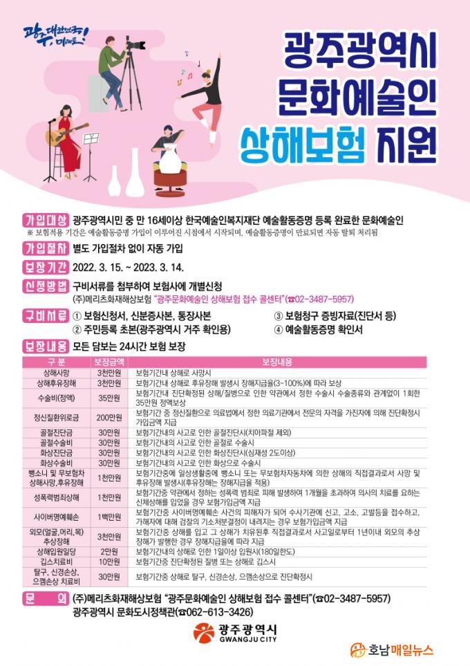 º¸Çè°¡ÀÔ ±â°£Àº 2022³â 3¿ù15ÀϺÎÅÍ 2023³â 3¿ù14ÀÏ ÀÚÁ¤±îÁö 1³âÀ̸ç, °¡ÀÔ´ë»óÀº Çѱ¹¿¹¼úÀκ¹ÁöÀç´Ü¿¡ ¿¹¼úȰµ¿Áõ¸íµî·ÏÀ» ¿Ï·áÇÑ ¸¸ 16¼¼ ÀÌ»ó ±¤ÁֽùÎÀ¸·Î º°µµ ÀýÂ÷ ¾øÀÌ ÀÚµ¿ °¡ÀԵȴÙ.