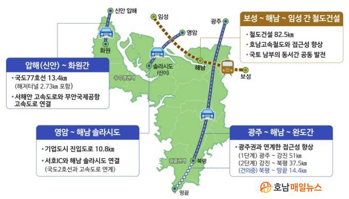 ¿ì¼± º¸¼º~ÇØ³²~¸ñÆ÷ ÀÓ¼º 82.5km¸¦ ¿¬°áÇÏ´Â ³²ÇؾÈöµµ°¡ ³»³â °³Å뿹Á¤À¸·Î, ¿Ã 9¿ù ±â¹Ý½Ã¼³ ÁذøÀ» ¸ñÇ¥·Î ¸·¹ÙÁö °ø»ç°¡ ÇÑâÀÌ´Ù. ³²ÇØ¾È Ã¶µµ´Â 1Á¶ 3,886¾ï¿øÀÇ »ç¾÷ºñ¸¦ ÅõÀÔÇØ ³²ÇØ¾È µ¿¼Ãà °£¼±Ã¶µµ¸ÁÀ» ±¸ÃàÇÒ °èȹÀ¸·Î, ÇØ³²¿¡¼´Â óÀ½À¸·Î öµµ±æÀÌ ¿¸®°Ô µÈ´Ù.