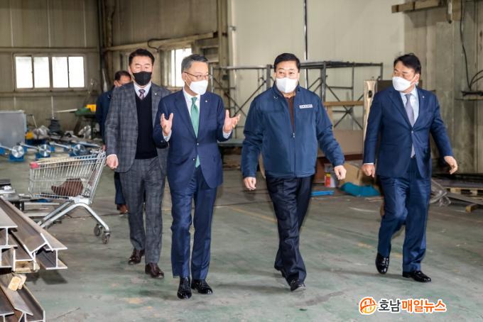 ±¤ÁÖ ±¤»ê±¸ ¼ÒÃ̵¿¿¡ ¼ÒÀçÇϴ ŸÀÌ¾î ±ÝÇü±â°è Á¦Á¶¾÷ü ÇÑÀÏÁ¾ÇÕ±â°è(ÁÖ)(´ëÇ¥ ÀÌÁ¤¿¬), ±¤ÁÖ ±¤»ê±¸ Áø°îµ¿¿¡ ¼ÒÀçÇÏ´Â ÀÚµ¿Â÷ ºÎǰ ±ÝÇü Á¦Á¶¾÷ü °í·ÁÁ¤¹Ð(ÁÖ)(´ëÇ¥ ³ª¿ë¼®), Àü³² ¿µ¾Ï±º »ïÈ£À¾¿¡ ¼ÒÀçÇÏ´Â (À¯)µÎ¼ºÁß°ø¾÷(´ëÇ¥ ¾È¼ºÁø), Àü³² ¿©¼ö½Ã ¸¸Èﵿ¿¡ ¼ÒÀçÇÏ´Â ÇØÃ»½Äǰ(ÁÖ)(Á¶¿ëÇö ´ëÇ¥) µîÀ» ¹æ¹®ÇØ »ç¾÷ÀåÀ» Á÷Á¢ µÑ·¯º¸°í, ´ëÇ¥ ¹× Á÷¿øµé°ú ¸é´ãÀ» ½Ç½ÃÇÑ ¼ÛÁ¾¿í ±¤ÁÖÀºÇàÀåÀº Äڷγª19·Î ÀÎÇÑ °æ±âħü¿Í ·¯½Ã¾Æ-¿ìÅ©¶óÀ̳ª »çÅ·ΠÀÎÇÑ Áö¿ª ¼öÃâÀÔ ±â¾÷¿¡ ´ëÇÑ ÇÇÇØÇöȲÀ» ²Ä²ÄÇÏ°Ô »ìÇǸç Àû±âÀÇ ±ÝÀ¶»ó´ã ¹× Áö¿øÀÌ ÀÌ·ïÁú ¼ö ÀÖ´Â ¹æ¾ÈÀ» ¸¶·ÃÇϱâ·Î Çß´Ù.