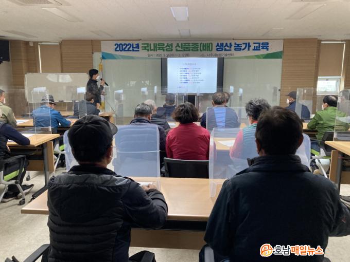 ¡®½ÅÈ¡¯, ¡®Ã¢Á¶¡¯, ¡®½´ÆÛ°ñµå¡¯ µî ±¹³» À°¼º ½ÅǰÁ¾ ¹è¸¦ Àç¹èÇÏ´Â 50¿© ³ó°¡¸¦ ´ë»óÀ¸·Î ³ó¾÷±â¼ú¼¾ÅÍ ÃÖÁ¤¹ü °ú¼ö±â¼úÆÀÀåÀÌ °»ç·Î ³ª¼ ½ÅǰÁ¾ Á¾·ù¿Í Ư¡, Àç¹è ¹æ¹ý, À¯ÀÇ »çÇ× µîÀ» ÁöµµÇß´Ù.
