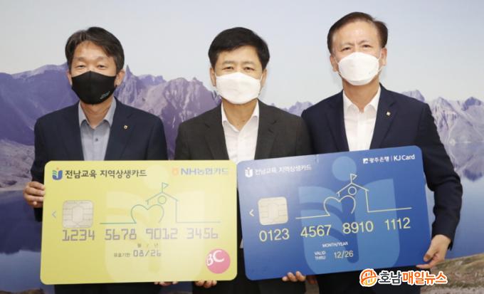 Àü³²±³À° Áö¿ª»ó»ýÄ«µå´Â 2021³â 8¿ù µµ±³À°Ã», NH³óÇùÀºÇà, ±¤ÁÖÀºÇàÀÌ Çù¾àÀ» ¸Î¾î ¹ßÇàÇÑ ¹ýÀÎÄ«µå·Î Äڷγª19·Î ħüµÈ Áö¿ª ¼Ò»ó°øÀÎÀ» µ½±â À§ÇØ Àü³²¿¡¼¸¸ »ç¿ëÀÌ °¡´ÉÇϵµ·Ï ¼³°èµÆ´Ù. ƯÈ÷, ÀÌ Ä«µå ÀÌ¿ë¾×ÀÇ 1.0%¸¦ ±â±ÝÀ¸·Î Á¶¼ºÇØ ¸Å³â Àü³²¹Ì·¡±³À°Àç´Ü Àü´ÞÇϱâ·Î Çß´Ù.