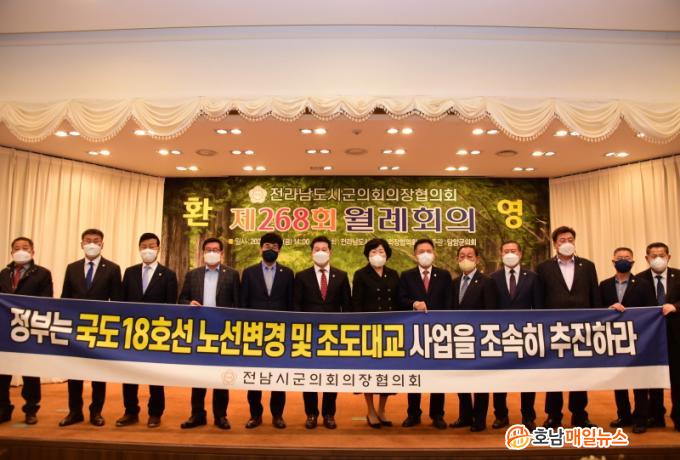 Àü³² ½Ã±ºÀÇȸ ÀÇÀåÇùÀÇȸ´Â À̳¯ ´ã¾ç±ºÀÇȸ¿¡¼ ȸÀǸ¦ ¿¾î ¹Ú±Ý·Ê Áøµµ±ºÀÇȸ ÀÇÀåÀÌ Á¦¾ÈÇÑ ¡®±¹µµ 18È£¼± ³ë¼± º¯°æ ¹× Á¶µµ´ë±³ °Ç¼³ °ÇÀǹ®¡¯À» äÅÃÇß´Ù.