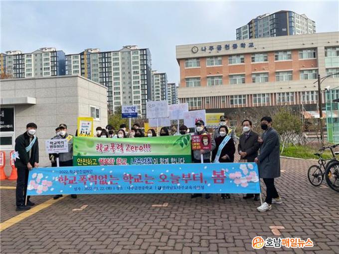 À̳¯ Ä·ÆäÀÎÀº ³ªÁÖ±ÝõÁßÇб³ ÇлýÀÚġȸ Çлýµé°ú ÇÔ²² ³ªÁÖ°æÂû¼¿Í ÇÕµ¿À¸·Î¡®Çб³Æø·Â ¾ø´Â Çб³´Â ¿À´ÃºÎÅÍ, º½¡¯À» ÁÖÁ¦·Î ÇÏ¿© ÁøÇàÇÏ¿´´Ù. »õ Çб⸦ ¸ÂÀÌÇÏ¿© Çб³Æø·Â°ú ±³Åë»ç°í ¾ø´Â ¾ÈÀüÇϰí ÇູÇÑ ±³À° ȯ°æÀ» Á¶¼ºÇϰí Çб³Æø·ÂÀÇ ½É°¢¼º°ú ¿¹¹æÀÇ Á߿伺À» Àû±Ø È«º¸Çϱâ À§ÇÏ¿© Áö¿ª À¯°ü±â°ü°ú ÇÔ²² ½Ç½ÃÇÏ¿´´Ù.