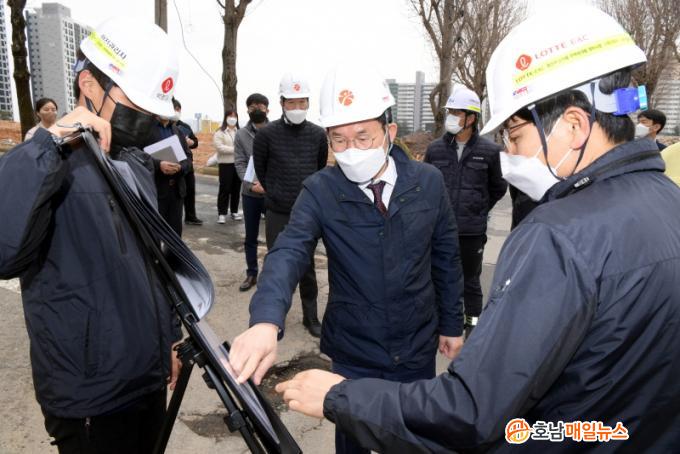 ¹® ºÎ½ÃÀåÀº ¸ÕÀú ³ó¼ºµ¿ ¾ÆÆÄÆ® ½ÅÃà°ø»ç ÇöÀå¿¡¼ ÄÜÅ©¸®Æ® ¾ç»ý µî ÁÖ¿ä °øÁ¤ ÁøÇà»óȲÀ» Á¡°ËÇϰí, °ø»ç °ü°èÀڵ鿡°Ô ½Ã¹æ¼, µµ¸é, ¼³°èµµ¼ Áؼö µî öÀúÇÑ Ç°Áú¡¤½Ã°ø°ü¸®¸¦ ´çºÎÇß´Ù.