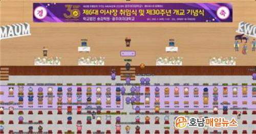 Äڷγª19·Î ÀÎÇØ ´ë¸é Çà»ç°¡ ¾î·Á¿î ȯ°æÀ» °í·ÁÇÏ¿© ¸ÞŸ¹ö½º¿¡ ±¸ÇöµÈ Çб³ º»°ü ±¹Á¦È¸ÀÇÀå °¡»ó°ø°£¿¡¼ Çлýµé°ú ±³Á÷¿øÀÌ ÇÔ²² ¸ð¿© ±â³ä½Ä Çà»ç¸¦ ÁøÇàÇß´Ù.
