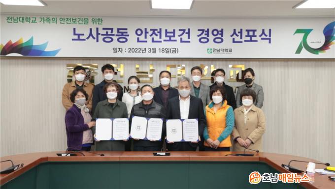 Àü³²´ë ³ë»ç´ëÇ¥´Â 3¿ù 18ÀÏ °¡Áø ¼±Æ÷½Ä¿¡¼ ¾ÈÀüº¸°Ç °æ¿µÀ» ¸ðµç °æ¿µÈ°µ¿ÀÇ ÃÖ¿ì¼± Çٽɰ¡Ä¡·Î ¿©±æ °ÍÀ» ¼±¾ðÇÏ°í ¡ãÃÖÀûÀÇ ¾ÈÀüº¸°Ç°æ¿µ½Ã½ºÅÛ ¿î¿µ ¡ãÀ§Çè¿äÀÎ Á¦°Å¸¦ ÅëÇÑ Áö¼ÓÀûÀÎ ÀçÇØ¿¹¹æ Ȱµ¿ ¡ã¾ÈÀüº¸°Ç ±³À°ÈÆ·Ã ¹× ¾ÈÀü¹®È Á¤Âø ¡ã¾ÈÀüº¸°Ç Áß¿ä»çÇ× °áÁ¤½Ã Åõ¸íÇÑ ¼ÒÅë°æ¿µÀ» Ç¥¸íÇß´Ù.
