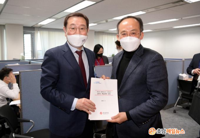 À̿뼷 ½ÃÀåÀº 28ÀÏ ÀμöÀ§¿øÈ¸¸¦ ¹æ¹®ÇØ ¾Èö¼ö ÀμöÀ§¿øÀå, ±èº´ÁØ Áö¿ª±ÕÇü¹ßÀüƯÀ§ À§¿øÀåÀ» ºñ·ÔÇØ Ãß°æÈ£ ±âȹÁ¶Á¤ºÐ°ú °£»ç, ÃÖ»ó¸ñ °æÁ¦1ºÐ°ú °£»ç, ÀÌâ¾ç °æÁ¦2ºÐ°ú °£»ç, À¯¿õȯ °æÁ¦2ºÐ°ú À§¿ø, ÀÌÁ¾¼· ¿Ü±³¾Èº¸ºÐ°ú À§¿ø µî°ú ¸é´ãÀ» °®°í À±¼®¿ ´ëÅë·É ´ç¼±ÀÎÀÇ ±¤ÁÖÁö¿ª 7´ë °ø¾à°ú Áö¿ª ÇÙ½É Çö¾ÈÀ» »õ Á¤ºÎ ±¹Á¤°úÁ¦·Î ¹Ý¿µÇØÁÙ °ÍÀ» °ÇÀÇÇß´Ù.