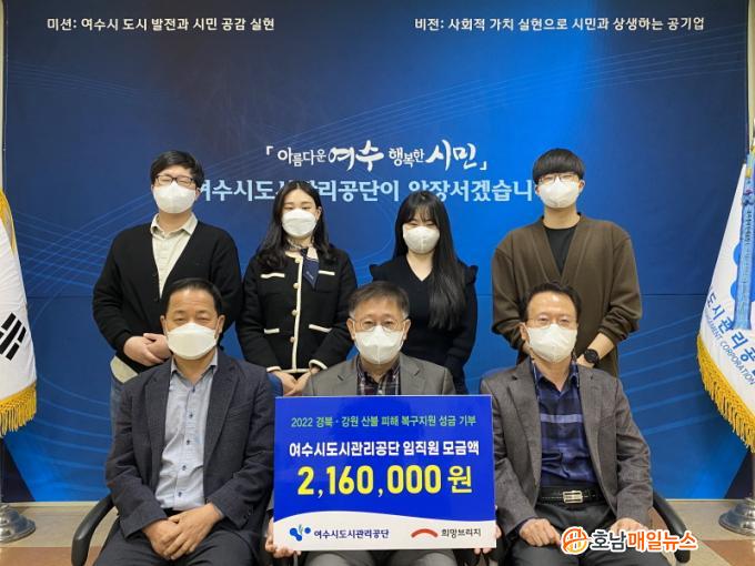 ÇÑÆí, ±èÅÂ±Ô ¿©¼ö½Ãµµ½Ã°ü¸®°ø´Ü ÀÌ»çÀåÀº ¡°ÀÓÁ÷¿øÀÌ ÇѸ¶À½À¸·Î ¸ðÀº ¼º±ÝÀÌ °æºÏ ¡¤ °¿øÁö¿ª¿¡ »êºÒ·Î Å« ÇÇÇØ¸¦ ÀÔÀº ÀÌÀç¹Îµé¿¡°Ô µû¶æÇÑ À§·Î·Î Àü´ÞµÇ±â¸¦ ¹Ù¶õ´Ù¶ó¸ç, °ø±â¾÷À¸·Î¼ÀÇ »çȸÀû Ã¥ÀÓÀ» ÀØÁö ¾Ê°í, Àç³ÀçÇØ·Î ÇÇÇØ¸¦ ÀÔÀº ÀÌ¿ôµéÀ» À§ÇØ Áö¼ÓÇØ¼ °ü½ÉÀ» µÎ°í Áö¿øÇϰڴ١±¶ó°í ¸»Çß´Ù.