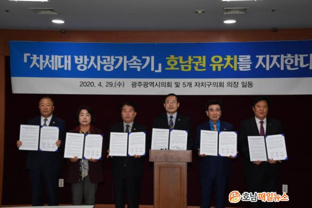 ±¤ÁÖ½ÃÀÇȸ ±èµ¿Âù ÀÇÀå°ú 5°³ ÀÚÄ¡±¸ ÀÇȸ ÀÇÀå(µ¿±¸ÀÇȸ ¹ÚÁ¾±Õ, ¼±¸ÀÇȸ °±â¼®, ³²±¸ÀÇȸ Á¶±âÁÖ, ºÏ±¸ÀÇȸ °íÁ¡·Ê, ±¤»ê±¸ÀÇȸ ¹èÈ«¼®)Àº 29ÀÏ, ¡®4¼¼´ë ¿øÇü ¹æ»ç±¤°¡¼Ó±â¡¯ÀÇ È£³²±Ç À¯Ä¡¸¦ ÁöÁöÇÏ´Â ¼º¸íÀ» ¹ßÇ¥Çß´Ù.