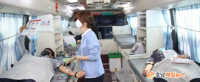 ÃÖ±Ù Äڷγª19 °¨¿° ¿ì·Á·Î ÇåÇ÷ÀÚ°¡ °¨¼ÒÇÔ¿¡ µû¶ó ½É°¢ÇÏ°Ô ¾î·Á¿òÀ» °Þ°í ÀÖ´Â Ç÷¾×¼ö±Þ¿¡ µµ¿òÀ» ÁÖ±â À§ÇØ ¸¶·ÃÇÑ À̳¯ ÇåÇ÷ ¿îµ¿¿¡´Â µµ±³À°Ã»°ú Àü³²µµ±³À°¿¬±¸Á¤º¸¿ø Á÷¿ø 30¿© ¸íÀÌ ÀÚÀ²ÀûÀ¸·Î Âü¿©Çß´Ù.