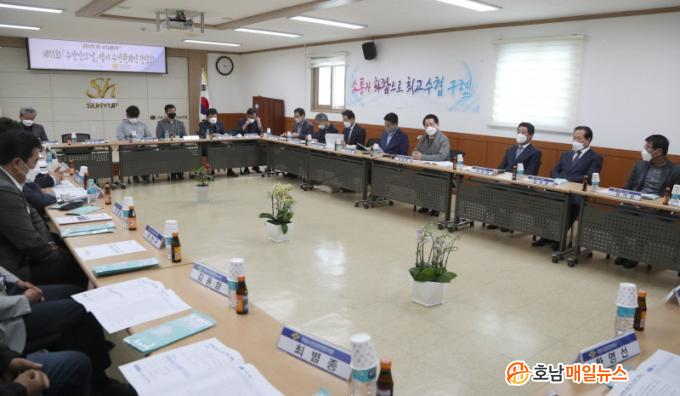 ÀÌ¾î °íÈﱺ¼öÇù ȸÀǽǿ¡¼ Àα٠Áö¿ª¼öÇùÀå, Àü³²µµ¼ö»ê¾÷°æ¿µÀο¬ÇÕȸ ÀÓ¿øÁø µî 20¿© ¸í°ú °£´ãȸ¸¦ Çϰí, ¼ö»ê¾÷ÀÇ Á߿伺À» µÇ»õ±â¸é¼ Àü³²µµ°¡ Çѱ¹ÀÇ ¹Ì·¡ ¼ö»ê¾÷À» ¼±µµÇÒ ¹æ¾ÈÀ» ÇÔ²² ¸ð»öÇß´Ù.