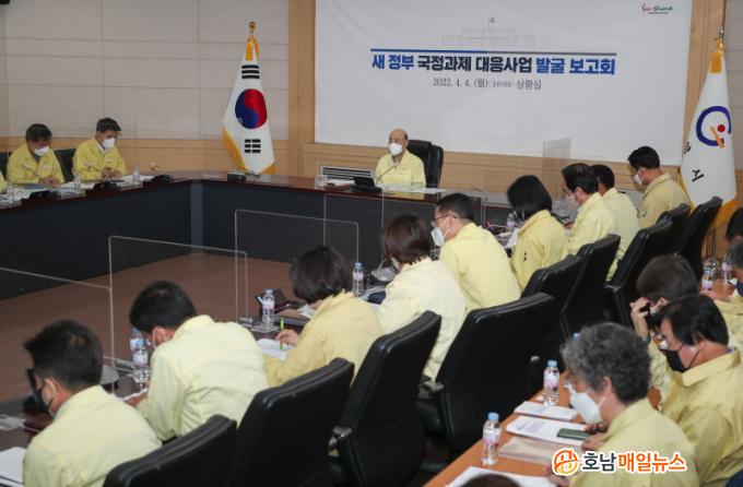 ½Ã´Â 4ÀÏ ½Ãû»óȲ½Ç¿¡¼ Á¤Çöº¹ ±¤¾ç½ÃÀå ÁÖÀç·Î ½Ç¡¤±¹Àå°ú ºÎ¼ÀåÀÌ Âü¿©ÇÑ °¡¿îµ¥ ¡®»õ Á¤ºÎ ±¹Á¤°úÁ¦ ´ëÀÀ»ç¾÷ ¹ß±¼ º¸°íȸ¡¯¸¦ °¡Á³´Ù.
