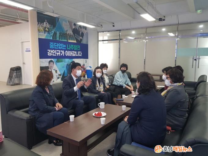 4ÀÏ Ã⸶¸¦ ¼±¾ðÇÑ ¹Î¼±6±â¿Í 7±â ³ªÁÖ½ÃÀåÀÎ °ÀÎ±Ô È帴 °¡Àå ¸ÕÀú ¿©¼º´Üü¿ÍÀÇ °£´ãȸ·Î °ø½Ä ÀÏÁ¤À¸·Î ½ÃÀÛÇß´Ù. ¿À´Ã 5ÀÏ ³ªÁֽà Áß¾Óµ¿¿¡ À§Ä¡ÇÑ ÀÚ½ÅÀÇ ¼±°Å»ç¹«¼Ò¿¡¼ ¿©¼º´Üü¿¬ÇÕ °¿¬¼÷ ȸÀåÀ» ºñ·ÔÇÑ È¸¿øµé°ú °£´ãȸ¸¦ °¡Áö°í ¡®ÀÚ³à ¾çÀ° ºÎ´ã °æ°¨ °ø¾à¡¯À» ¹ßÇ¥ÇÏ¿´´Ù.