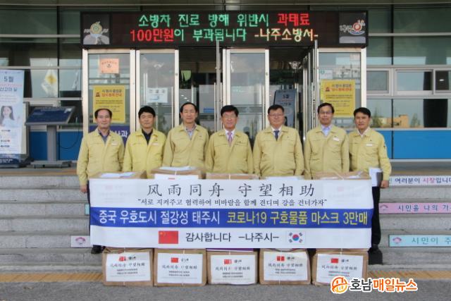 ³ªÁֽô Áß±¹¿¡¼ Áö¿øµÈ ¿¹¹æ ¸¶½ºÅ©¸¦ Àç³¾ÈÀü´ëÃ¥º»ºÎ¿¡ ºñÄ¡ÇÏ°í ¸¶½ºÅ© ±¸ÀÔÀÌ ¾î·Á¿î Àú¼ÒµæÃþ°ú ½Ãû, À¾.¸é.µ¿À» ¹æ¹®ÇÏ´Â ½Ã¹Îµé¿¡°Ô ¹èºÎÇÒ °èȹÀÌ´Ù.°ÀÎ±Ô ³ªÁÖ½ÃÀåÀº ¡°³ªÁÖ½Ã¿Í Áß±¹ ÅÂÁÖ½Ã¿Í ³²Ã¢½Ã°¡ ÁÖ°í¹ÞÀº ¸¶½ºÅ©´Â ´Ü¼øÈ÷ ¹æ¿ª ¹°Ç° Áö¿øÀ» ³Ñ¾î ¾î·Á¿î ½Ã±â¿¡ ÇÔ²² ¿ª°æÀ» À̰ܳ»¸é¼ ´õ¿í ±í¾îÁø ¿ìÁ¤ÀÇ »ó¡À¸·Î ±â¾ïµÉ °ÍÀ̶ó¸ç, ÅÂÁֽùεéÀÇ µû¶æÇÑ ¸¶À½ÀÌ Àß ÀüÇØÁú ¼ö ÀÖµµ·Ï ¼ÒÁßÈ÷ »ç¿ëÇϰڴ١±°í È´ä ¸Þ½ÃÁö¸¦ ÀüÇß´Ù.