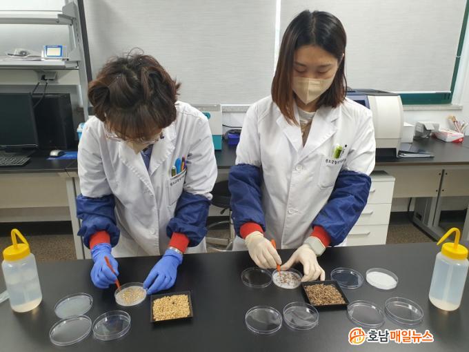³ó¾÷±â¼ú¼¾ÅÍ´Â Á¾ÀÚ ¹ß¾Æ·Â °Ë»ç¸¦ ÅëÇØ º±¾¾ Á¾ÀÚ »ç¿ë °¡´É ¿©ºÎ¸¦ ÆÇ´ÜÇØÁÖ´Â ½Ò ǰÁú°ü¸®½ÇÀ» ¿î¿µÇϰí ÀÖ´Ù. º±¾¾ Á¾ÀÚ ¹ß¾Æ·Â °Ë»ç Èñ¸Á ³ó¾÷ÀÎÀº º±¾¾ 500g(Á¾ÀÌÄÅ 3ÄÅ)À» ºÀÅõ¿¡ ´ã¾Æ ÁÖ¼Ò, ¼º¸í, ¿¬¶ôó, ǰÁ¾¸íÀ» ±âÀç ÈÄ ³ó¾÷±â¼ú¼¾ÅÍ ½Ò ǰÁú°ü¸®½Ç¿¡ ÀÇ·ÚÇϸé 10ÀÏ À̳» ºÐ¼® °á°ú¸¦ ¹Þ¾Æ º¼ ¼ö ÀÖ´Ù.