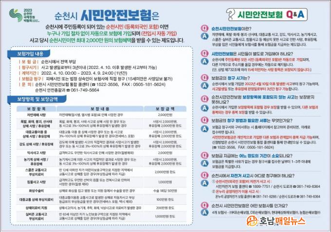 ¡®½Ã¹Î¾ÈÀüº¸Ç衯À̶õ ¼øÃµ½Ã¿¡ ÁÖ¼Ò¸¦ µÎ°í ÀÖ´Â ¸ðµç ½Ã¹Î(µî·Ï ¿Ü±¹ÀÎ Æ÷ÇÔ)À» ´ë»óÀ¸·Î ¼øÃµ½Ã°¡ º¸Çè·á¸¦ Àü¾× ºÎ´ãÇØ ÀÏ»ó»ýȰ¿¡¼ ¹ß»ýÇÒ ¼ö ÀÖ´Â Àç³À̳ª °¢Á¾ »ç°í·ÎºÎÅÍ ÀÎÀû ÇÇÇØ¸¦ ÀÔÀº ½Ã¹ÎÀÌ º¸ÇèÇýÅÃÀ» ¹Þ´Â Á¦µµ´Ù. º°µµÀÇ °¡ÀÔ ½Åû ÀýÂ÷ ¾øÀÌ ¼øÃµ¿¡ Áֹεî·ÏÀ» µÎ°í ÀÖÀ¸¸é ÀÚµ¿À¸·Î °¡ÀԵǸç, °³ÀÎÀÌ °¡ÀÔÇÑ ½Ç¼Õº¸Çè°ú »ó°ü¾øÀÌ Áߺ¹º¸Àåµµ °¡´ÉÇÏ´Ù.