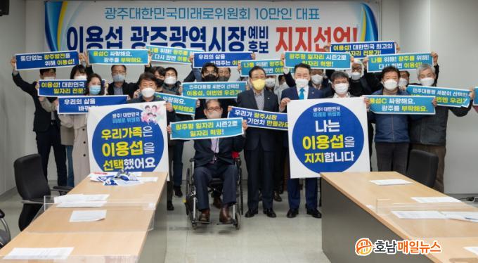À̵éÀº À̳¯ ÁöÁö¼±¾ðÀ» ÇÏ¸ç ¡°Áö³ 2¿ù ±¹°¡±ÕÇü¹ßÀü°ú ±¤ÁÖÀÇ ¹Ì·¡¼ºÀåÀ» À§ÇÑ ÃæÀǸ¦ ¸ð¾Æ ÀÌÀç¸í ´ë¼±È常¦ ÁöÁöÇß´ø 10¸¸È¸¿øÀÇ ±× ¸¶À½ ±×´ë·Î ¡®´õ Å©°í ´õ °ÇÑ ±¤ÁÖ¡¯¸¦ ¿Ï¼ºÇϰڴٴ À̿뼷 ±¤ÁÖ±¤¿ª½ÃÀå ¿¹ºñÈ常¦ ÁöÁöÇÑ´Ù¡±°í ¹àÇû´Ù.