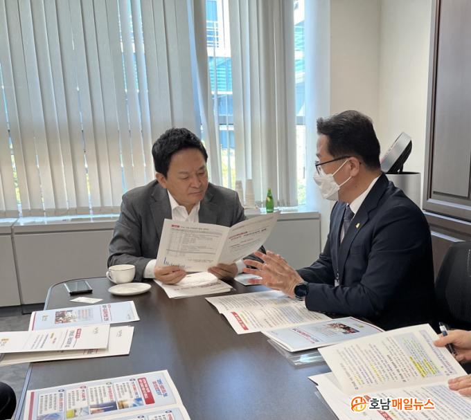¹®±ÝÁÖ ºÎÁö»ç´Â À̳¯ ¿øÈñ·æ À§¿øÀå¿¡°Ô ¡°À±¼®¿ ´ç¼±ÀÎÀÌ ¾à¼ÓÇÑ Àü³² ģȯ°æ Àç»ý¿¡³ÊÁö »ê¾÷º§Æ® ¹× °íÈï ¿ìÁÖ¡¤Ç×°ø»ê¾÷ Ŭ·¯½ºÅÍ Á¶¼º µî Àü³² 8´ë °ø¾àÀÌ Á¦´ë·Î ÀÌÇàµÇ·Á¸é »õ Á¤ºÎÀÇ ±¹Á¤°úÁ¦¿¡ ¹Ý¿µÀÌ ÇÊ¿äÇÏ´Ù¡±°í ¸»Çß´Ù.