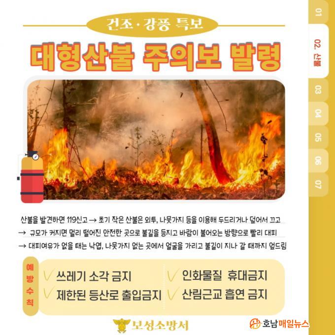 ÇÑÆí, º¸¼º¼Ò¹æ¼ °ü°èÀÚ´Â ¡°Áö±Ý°ú °°Àº °ÇÁ¶ÇÑ ½Ã±â¿¡´Â ´ëÇü »êºÒ ¹ß»ý·üÀÌ ³ô´Ù¸ç, »êºÒÈÀç·Î ÀÎÇÑ ÀÎ¸í¡¤Àç»êÇÇÇØ¸¦ ¿¹¹æÇϱâ À§ÇØ ¾ÈÀü ¼öÄ¢À» ÁöŰ´Â µ¥ Àû±Ø µ¿ÂüÇØ ´Þ¶ó¡±°í ´çºÎÇß´Ù.