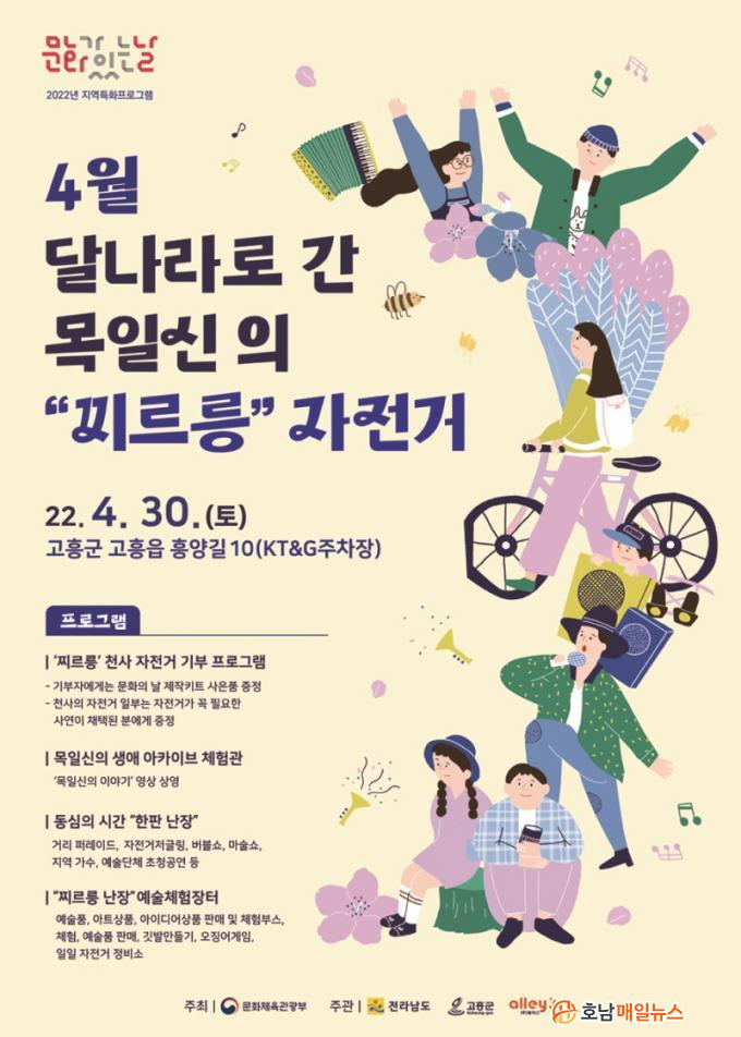 À̹ø, 4¿ù ¹®È°¡ ÀÖ´Â ³¯ ÇÁ·Î±×·¥Àº ¿À´Â 30ÀÏ, ¿ÀÈÄ 1½ÃºÎÅÍ KT&GÁÖÂ÷Àå(°íÈïÀ¾ Èï¾ç±æ 10)¿¡¼ °³ÃֵǸç, °íÈïÀÇ ´ëÇ¥ÀûÀÎ ¾Æµ¿¹®ÇÐ ÀÛ°¡ ¸ñÀϽм±»ýÀÇ ÀÛǰÀÇ ÀÚÀü°Å¸¦ ¸ðƼºê·Î ÇÏ¿© ÇÁ·Î±×·¥ÀÌ ÁøÇàµÈ´Ù.