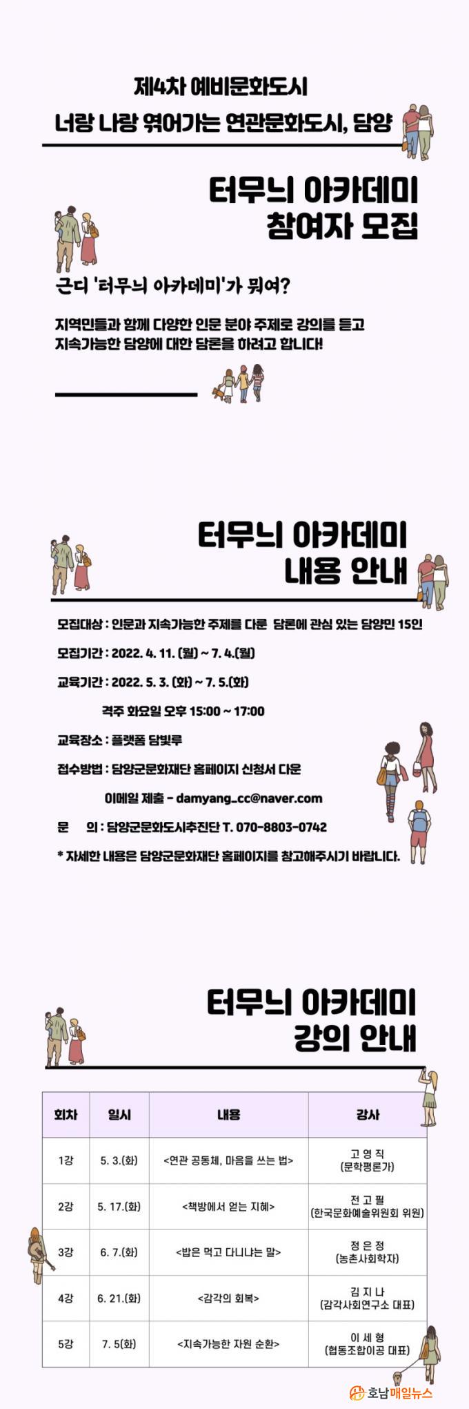 5¿ù 3ÀϺÎÅÍ 7¿ù 5ÀϱîÁö °ÝÁÖ È¿äÀÏ ¿ÀÈÄ 3½Ã~5½Ã¿¡ ÁøÇàµÇ´Â Å͹«´Ì ¾ÆÄ«µ¥¹Ì´Â Áö¿ª°ú ¹®È¿¡ °ü½É ÀÖ´Â ´ã¾ç±º¹ÎÀÌ¸é ´©±¸³ª Âü¿©°¡ °¡´ÉÇÏ´Ù.Á¢¼ö´Â 4¿ù 11ÀϺÎÅÍ 7¿ù 4ÀϱîÁö »ó½Ã °¡´ÉÇÏ¸ç ´ã¾ç±º¹®ÈÀç´Ü »ç¾÷ °ø°í¶õÀ» Âü°íÇØ À̸ÞÀÏ(damyang_cc@naver.com)À¸·Î ½ÅûÇÏ¸é µÈ´Ù.