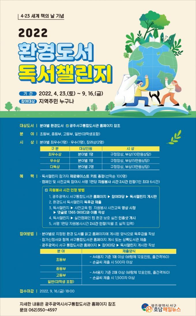 ±âÈĺ¯È, ¹Ì¼¼¸ÕÁö µî ȯ°æ ¹®Á¦°¡ ´ëµÎµÇ°í ÀÖ´Â »óȲ¿¡¼ ȯ°æ Ä£È µ¶¼ÇÁ·Î±×·¥À» ÅëÇØ ȯ°æº¸È£ÀÇ Àǹ̸¦ µÇ»õ°Üº¸°í Áö¿ªÁֹεéÀÇ µ¶¼¿¡ ´ëÇÑ Èï¹Ì¸¦ ³ôÀ̱â À§ÇØ ÃßÁøµÇ´Â À̹ø µ¶¼Ã§¸°Áö´Â ºÐ¾ßº°·Î ÁöÁ¤ÇØÁØ È¯°æµµ¼¸¦ ÀÐ°í µ¶ÈݨÀ» Âü°¡½Åû¼¿Í ÇÔ²² ±¤ÁÖ ¼±¸ÅëÇÕµµ¼°ü ȨÆäÀÌÁö³ª »ó·Ïµµ¼°ü¿¡ Á¦ÃâÇÏ¸é µÈ´Ù.