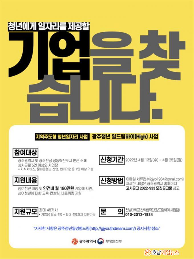 ±¤ÁÖû³â Àϵ帲ÇÏÀÌ(High) »ç¾÷Àº Á¤±ÔÁ÷À¸·Î ä¿ëÇÑ Ã»³âµéÀÇ ÀΰǺñ 200¸¸¿ø Áß 180¸¸¿øÀ» ±â¾÷¿¡ Áö¿øÇϸç, ±¤ÁÖÁö¿ª ¹ÌÃë¾÷û³âµé¿¡°Ô ´Ù¾çÇÑ ÀÏÀÚ¸®¿Í ±³À°, ³×Æ®¿öÅ·À» Á¦°øÇÏ´Â »ç¾÷ÀÌ´Ù.