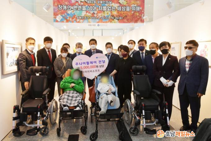 ¼±¸´Â À̳¯ ¢ß¾ÆÀ̺ñ¼ÒÇÁÆ®(´ëÇ¥ À¯¿µ¹è)·ÎºÎÅÍ ÈÄ¿ø¹ÞÀº 250¸¸¿ø »ó´çÀÇ ÈÙü¾î 2´ë¸¦ °Åµ¿ÀÌ ºÒÆíÇÑ °ü³» ÁßÁõÀå¾ÖÀÎ 2¸í¿¡°Ô Àü´ÞÇØ Àǹ̸¦ ´õÇß´Ù.
