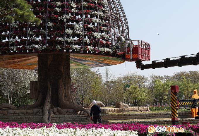 [È£³²¸ÅÀÏ´º½º] ÇÔÆò±ºÀÌ Á¦24ȸ ÇÔÆò³ªºñ´ëÃàÁ¦ÀÇ ¼º°øÀûÀÎ °³ÃÖ¸¦ ±â¿øÇϸç Çà»çÀåÀÎ ÇÔÆò¿¢½ºÆ÷°ø¿ø¿¡ 4õ¿© °³ÀÇ »þÇÇ´Ï¾Æ ÈºÐÀ¸·Î ³ôÀÌ 14m ±Ô¸ðÀÇ ´ëÇü ²ÉžÀ» ¼³Ä¡Çϰí ÀÖ´Ù.