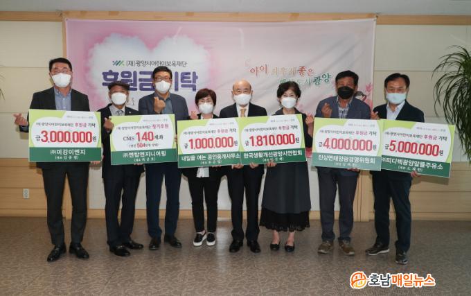 (Àç)±¤¾ç½Ã¾î¸°À̺¸À°Àç´ÜÀº Áö³ 20ÀÏ Á¤Çöº¹ ±¤¾ç½ÃÀå, °¿ëÀç ¾î¸°À̺¸À°Àç´Ü »óÀÓÀÌ»ç, ±âŹÀÚ µî 15¸íÀÌ Âü¼®ÇÑ °¡¿îµ¥ ÈÄ¿ø±Ý ±âʽÄÀ» °¡Á³´Ù. ±âʽÄÀº ¾Æ·¡¿Í °°ÀÌ À¯¼öÀÇ ´Üü¿Í ±â¾÷¿¡¼ CMS 140°èÁÂ, ÃÑ 3,071¸¸ ¿øÀÇ ¼ÒÁßÇÑ ÈÄ¿ø±ÝÀ» Àü´ÞÇß´Ù.