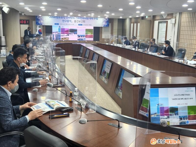 º¸°íȸ¿¡¼´Â Àü³²µµÀÇ Áö¿ª Ư¼ºÀ» ¹Ý¿µÇÑ ±âÈĺ¯È ´ëÀÀ ¿©°ÇÀ» ºÐ¼®Çϰí, Àü³²µµÀÇ Åº¼ÒÁ߸³ ºñÀü°ú ¸ñÇ¥, ¿Â½Ç°¡½º °¨Ãà ¼¼ºÎ°èȹ µîÀ» º¸°íÇϰí, ¿ÜºÎ Àü¹®°¡ ÀÚ¹®À§¿ø°ú ź¼ÒÁ߸³ °ü·Ã µµ ½Ç°ú µî ´Ù¾çÇÑ ÀǰßÀ» µé¾ú´Ù.