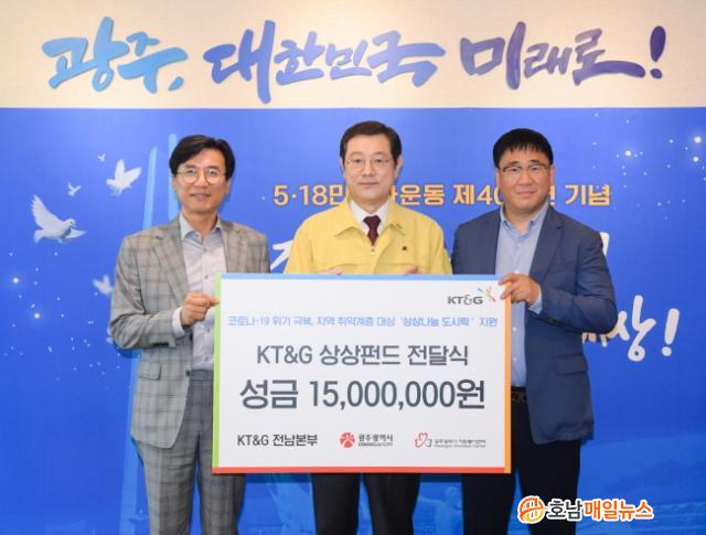 KT&G Àü³²º»ºÎ´Â ¡®»ó»ó³ª´® µµ½Ã¶ô ²Ù·¯¹Ì¡¯ Á¦ÀÛÀ» À§ÇØ 1500¸¸¿øÀ» (»ç)±¤ÁÖ½ÃÀÚ¿øºÀ»ç¼¾ÅÍ¿¡ Àü´ÞÇß´Ù. ¹æ¿ïÅ丶Åä, °¡Áö, ¾çÆÄ µî ±¤ÁÖÁö¿ª ³ó°¡ »óǰÀ¸·Î ±¸¼ºÇÑ ¡®»ó»ó³ª´® µµ½Ã¶ô ²Ù·¯¹Ì¡¯´Â ÀÚÄ¡±¸ÀÚ¿øºÀ»ç¼¾ÅͰ¡ ÃßõÇÑ Ãë¾à°èÃþ 500¼¼´ë¿¡ Àü´ÞµÉ ¿¹Á¤ÀÌ´Ù.